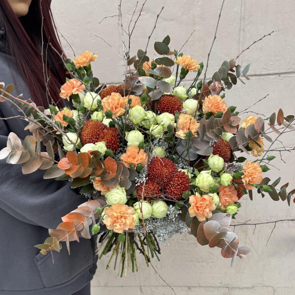 Кустовая гвоздика 20 шт Кустовая Роза 10 шт Хризантема 4 шт