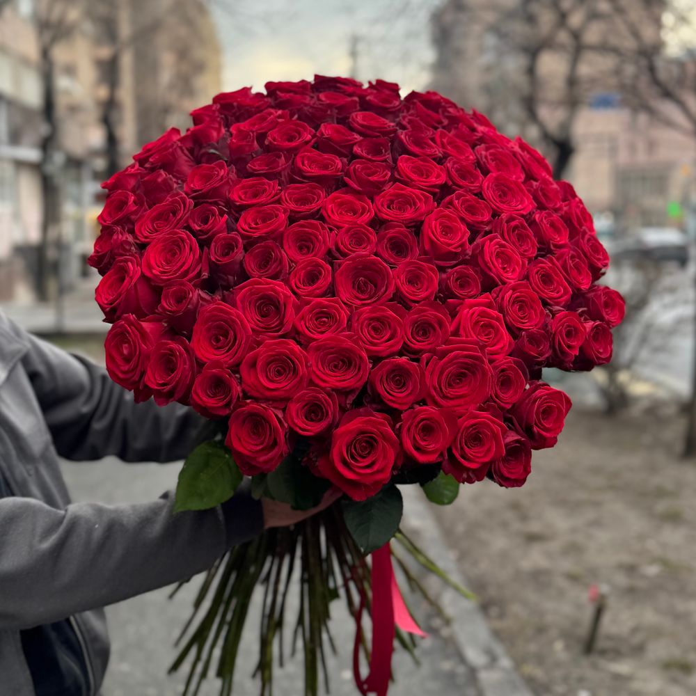 Красные Розы «Red Naomi» 90 см 101 шт