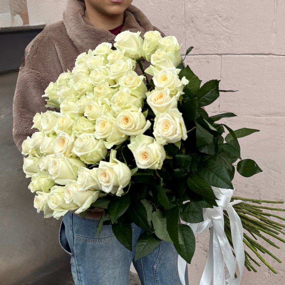 Белые розы «Dolomiti» 90 см 45 шт